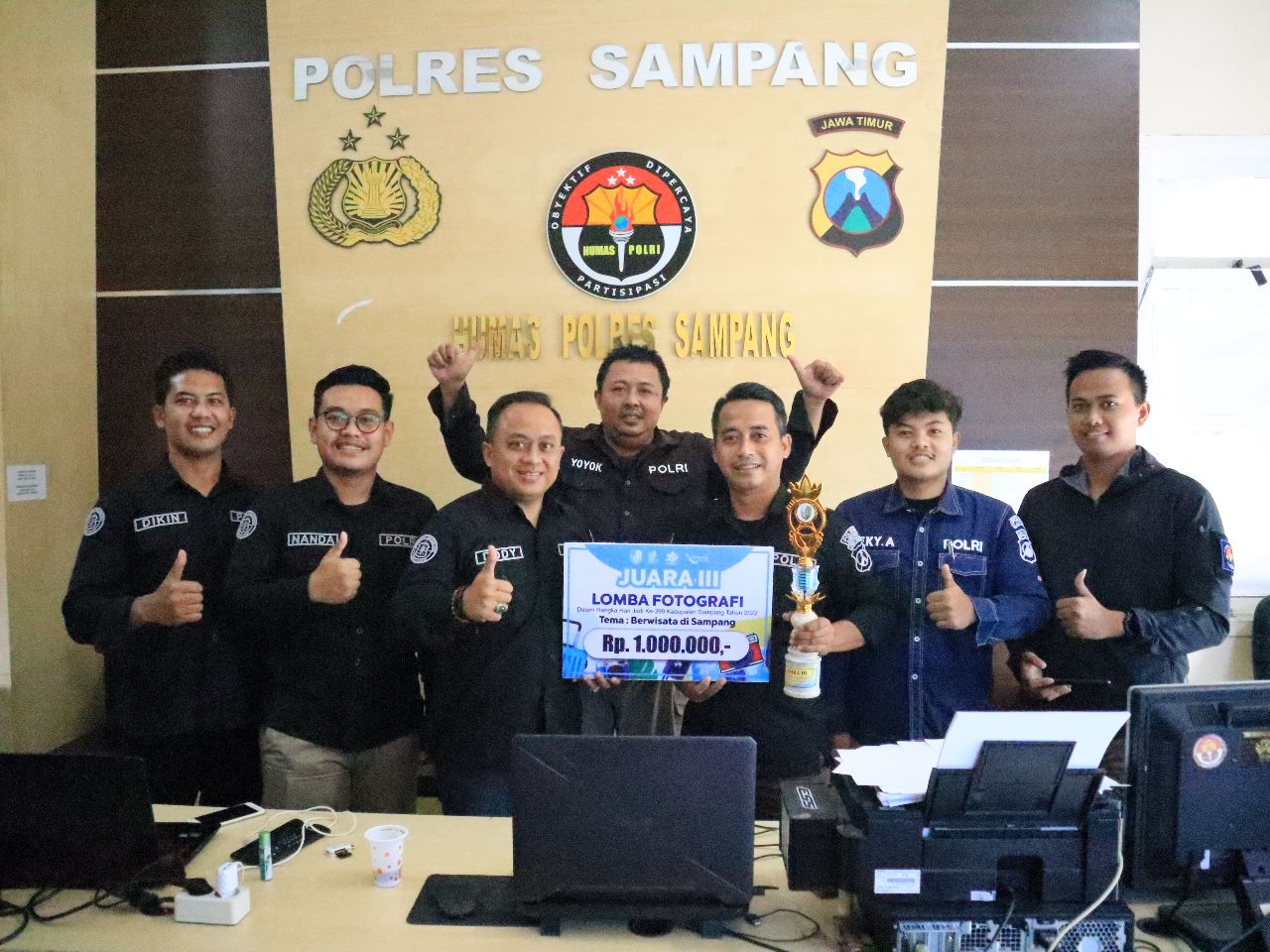 com - Sampang - Kapolres Sampang AKBP Arman S.IK, M.Si yang di wakili Kasi Humas Polres Sampang Ipda Dody Darmawan SH menyampaikan kepada awak media bahwa Humas Polres Sampang mendapat juara ke-3 lomba fotografi dalam rangka hari jadi Kabupaten Sampang yang ke-399 tahun 2022.