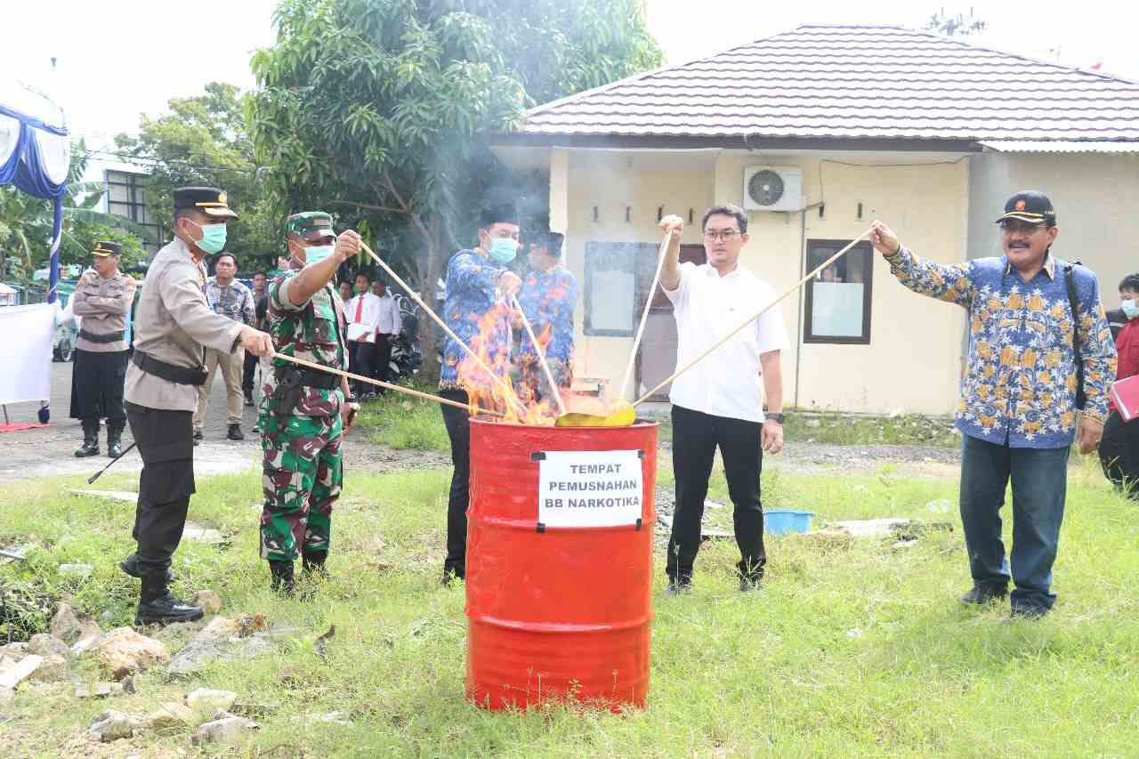 Dari pantauan awak media, Kapolres Sampang dan Forkopimda Kabupaten Sampang memusnahkan Sabu sebanyak 19,02 gram dengan cara melarutkan ke air kemudian di blender dan dibuang ke septic tank. Untuk alat hisap (Bong), korek dan barang bukti lainnya dengan di bakar.